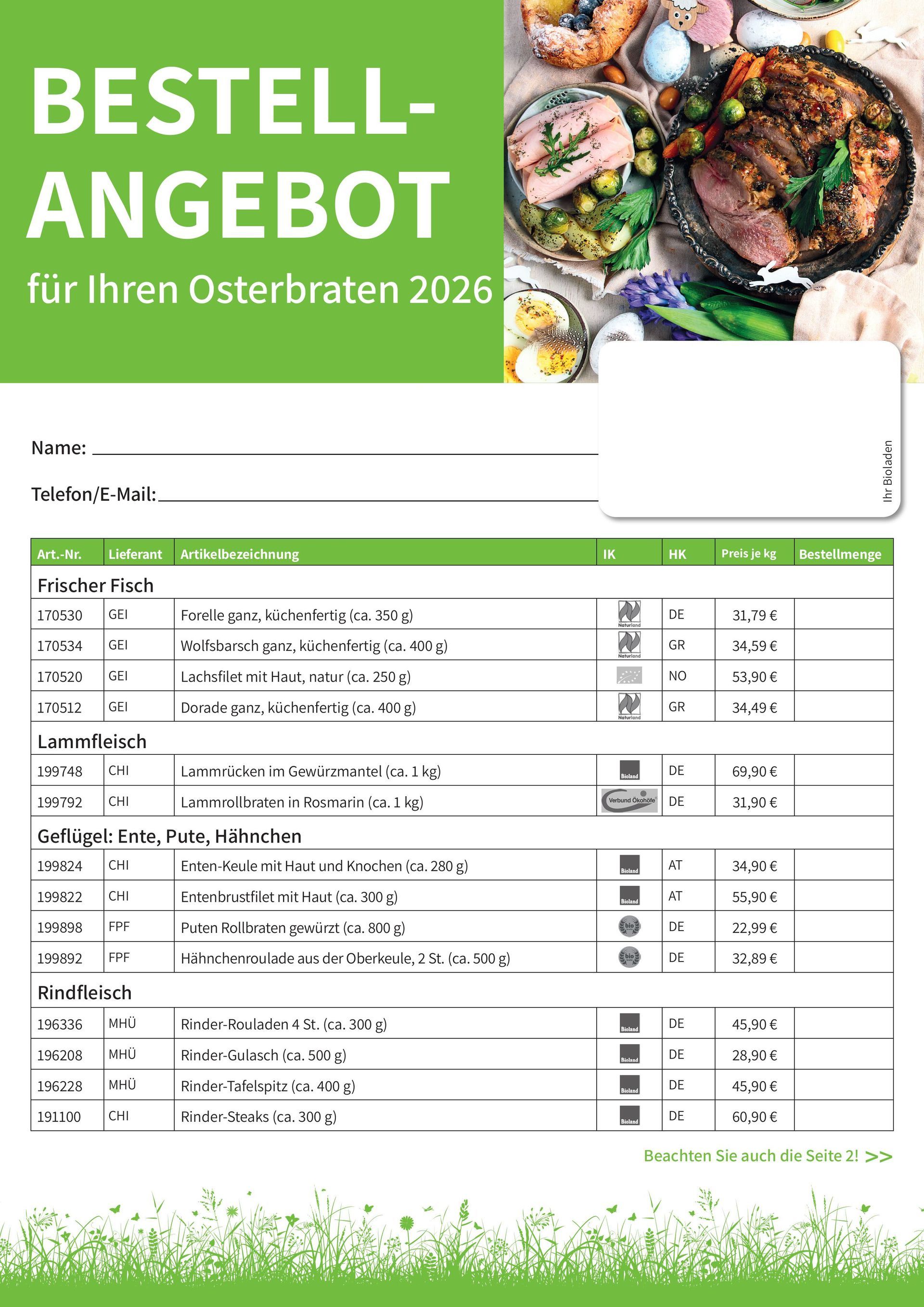 Bestellung Osterbraten